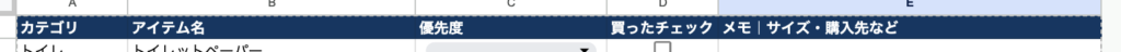 「買ったらチェックを入れる」だけなので、どこまで準備が進んでいるかが一目で分かります。